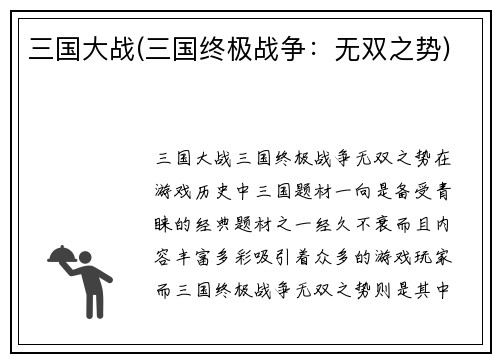 三国志战略版攻略(搞定三国志战略版:金戈铁马,万无一失)