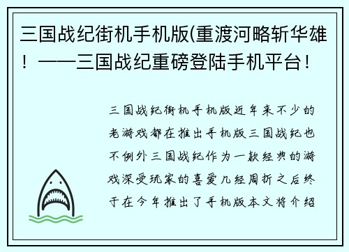 三国战纪街机手机版(重渡河略斩华雄!——三国战纪重磅登陆手机平台!)